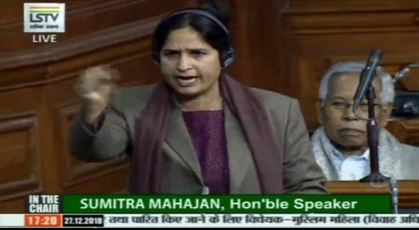 We are discussing a bill that is said to be protective of women. Meenakshiji, Smriti Iraniji, Supriyaji, Sushmitaji have already spoken and I am taking women’s names because it (the issue) is related to us, with marriage and husband is also involved in it. It is not the issue related only to wife but rather to an entire family. I heard the speech from this side and from that side also and will like to speak in brief. Just tell me what the gist of it is. Supriya said that she had talked with some women and I would also like to say that I met my childhood friend after 22 years and she is a Muslim. She is educated and all her family members are Muslims. [Murmuring] Yes, it requires to be said when you people are governing.