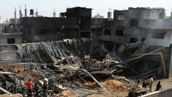 A general view shows the destruction after an Israeli air strike on a building in Gaza on Mar 12