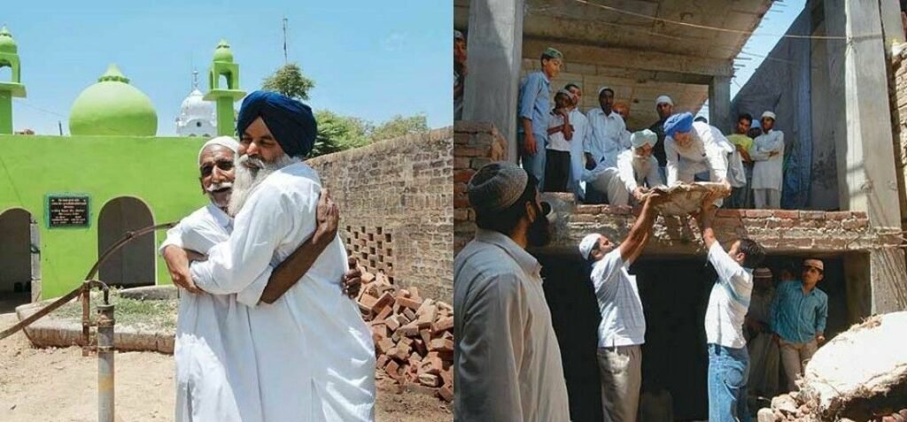 Another instance of this was recorded in the village of Machike in the Moga district, where an old mosque had been demolished to make room for a roadway and was later restored with funding from Hindus and Sikhs.