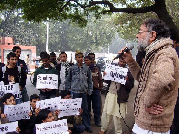 Protesting against the Israeli attacks on Gaza, Students Islamic Organisation of India (SIO) took out a rally at Jantar Mantar, New Delhi on December 29. Dr. Zafarul Islam Khan, Pesident All India Muslim Majlis-e-Mushawarat, addressed the gathering. He underlined the gravity and height of inhumanity of the Israeli attack by referring to the fact that a serious economic blockade was already going on in Gaza.
